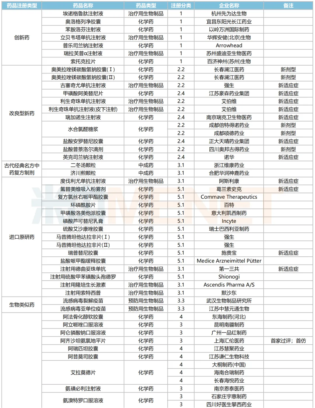 2026年1月有7个1类新药首次获批上市,11个品种获批新适应症,4个品种获批新剂型。此外,还有2个古代经典名方中药复方制剂获批上市。