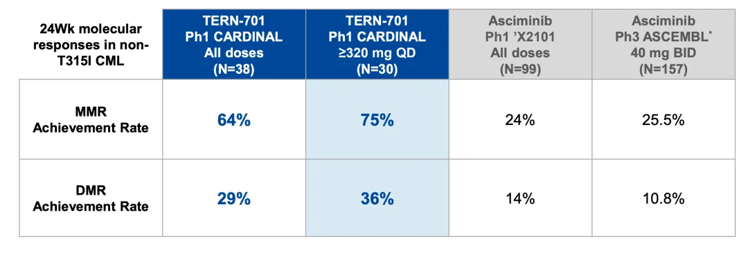在血液瘤CML领域,Terns 公布了75%的分子学缓解率数据。