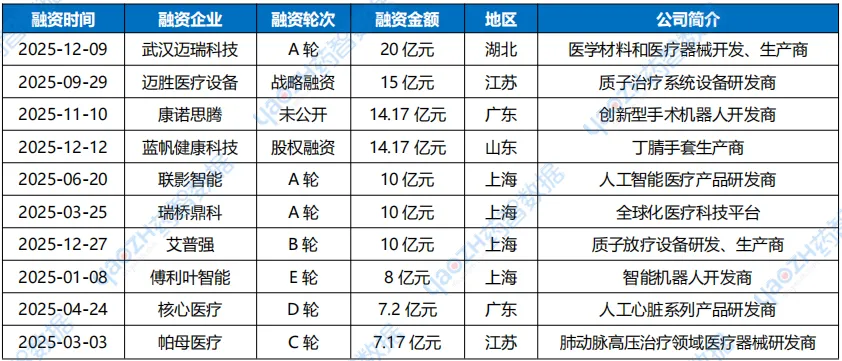 2.2.1 2025年国内器械行业企业融资额TOP10