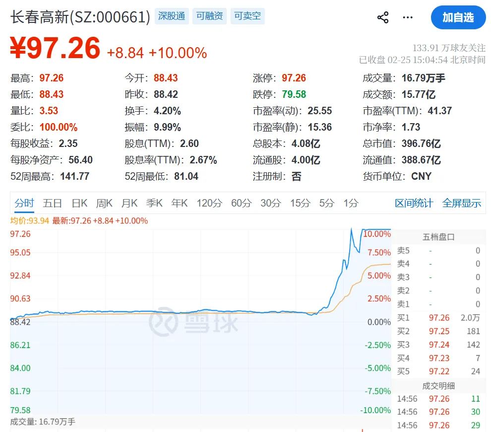 2月25日,长春高新一则公告引爆资本市场——其子公司金赛药业自主研发的GenSci141软膏临床试验申请,正式获批临床。受此消息刺激,长春高新尾盘直线涨停。