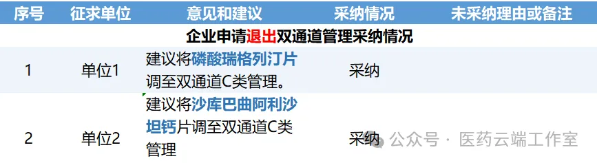 其中,医保局采纳了磷酸瑞格列汀片、沙库巴曲阿利沙坦钙片两个品种退出双通道申请。