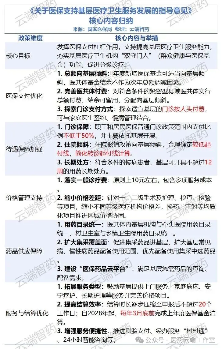 政策明确了基层门诊报销比例≥50%、长处方最长 12 周、结算时限≤20 个工作日等具体标准,药企可按这些标准制定基层下沉策略,精准匹配基层需求。
