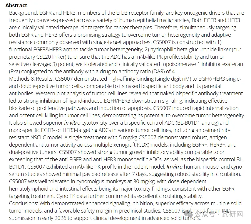 EGFR/HER3双特异性ADC——CS5007