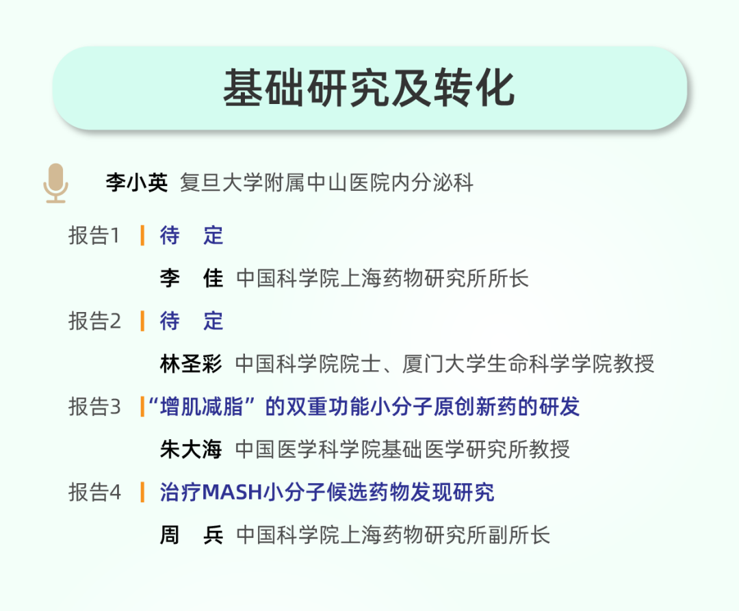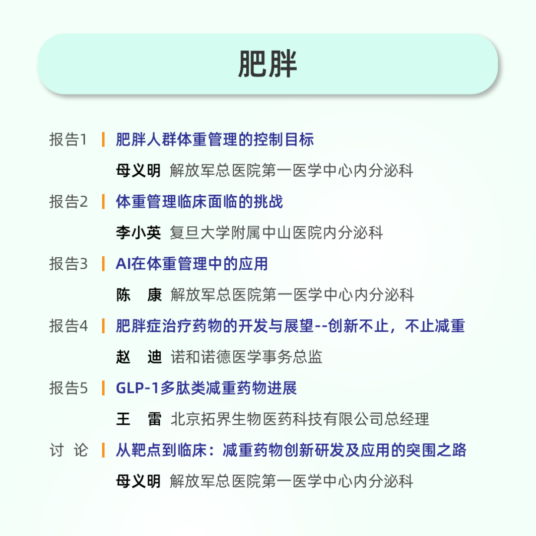 大会紧密追踪科学最前沿,设置多场重磅报告,揭示下一代疗法的研发脉络。聚焦最新机制,深入探讨创新药物在联合治疗中的价值等前沿学术信息。关注突破性技术:特设专题报告,剖析“增肌减脂”双重功能小分子药物、治疗MASH的小分子候选药物,并专设“AI在体重管理中的应用”议题,展现人工智能驱动研发与医疗的新范式。