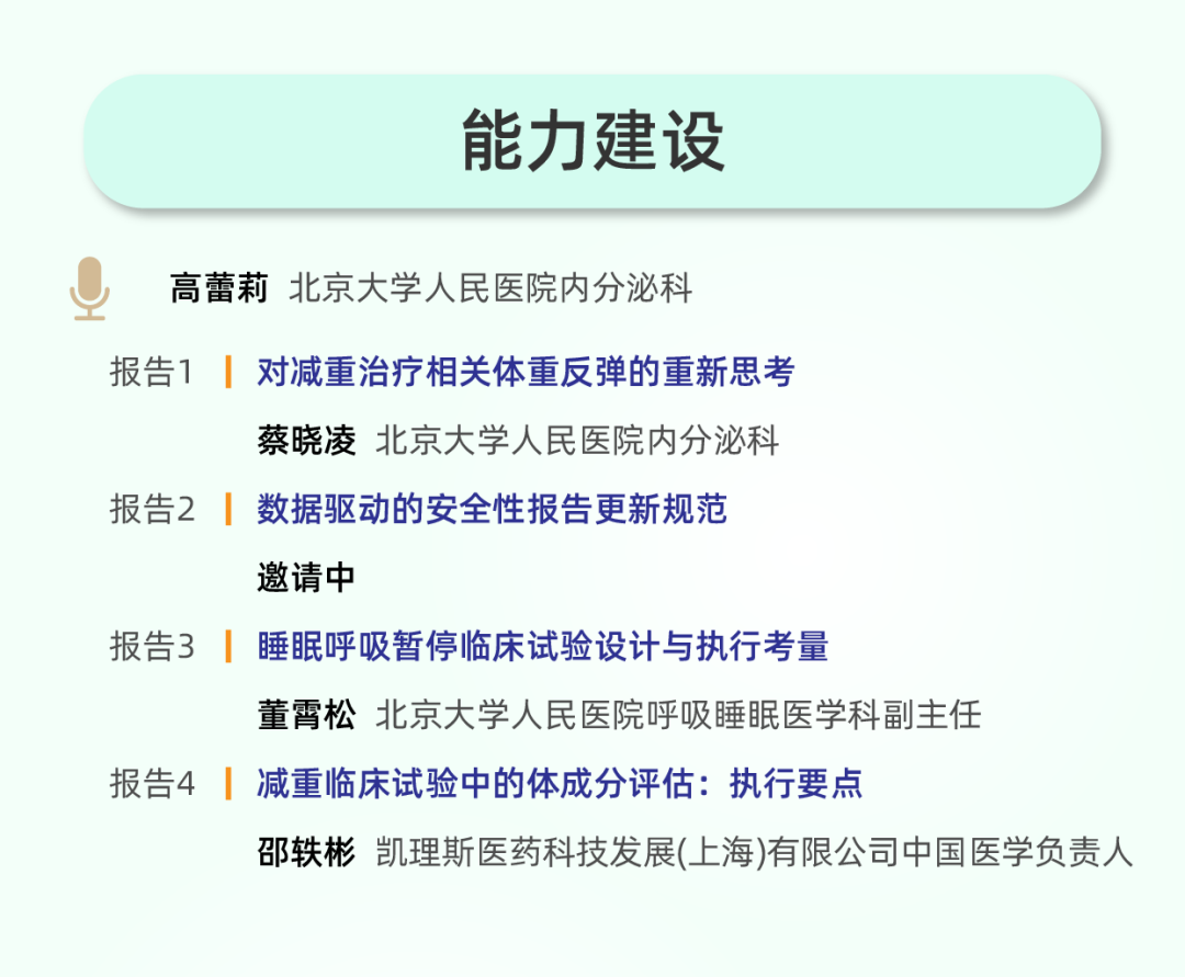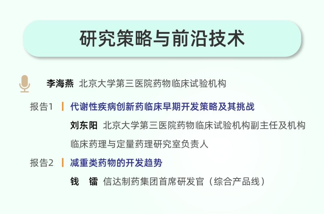 大会高度务实,设置多个分论坛直击行业当前最迫切的实操与战略挑战。探讨“减重治疗相关体重反弹”“减重治疗对骨骼和肌肉的影响”等药物上市后面临的核心临床问题。以“降糖药物在FDA的塞翁失马时刻”等案例分析,探讨全球同步开发策略。同时,围绕“代谢性疾病创新药临床早期开发策略及其挑战”等议题展开讨论,为企业研发提供战略指引。