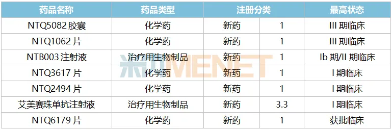 除了NTQ5082胶囊,目前公司还有1款1类新药正在进行III期临床。NTQ1062片在今年2月完成了III期临床的首例受试者入组给药,联合氟维司群治疗内分泌耐药的HR阳性/HER2阴性乳腺癌。