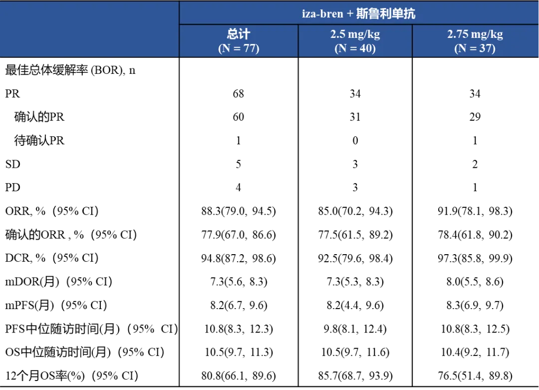 去年的ESMO上,该产品还公布了一组漂亮的全球I期数据(iza-bren Global研究),首次在大样本西方实体瘤人群中实现了与国内研究高度一致的疗效获益(mPFS达5.4个月),甚至更高的肿瘤应答率(cORR 55%),验证了中国数据可靠性的同时,也打通了其全球化的商业路径。