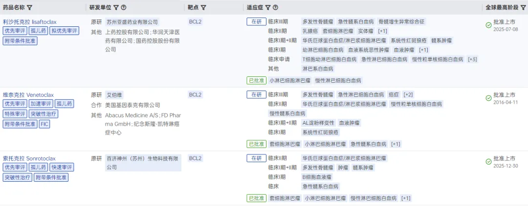 全球已上市Bcl-2抑制剂