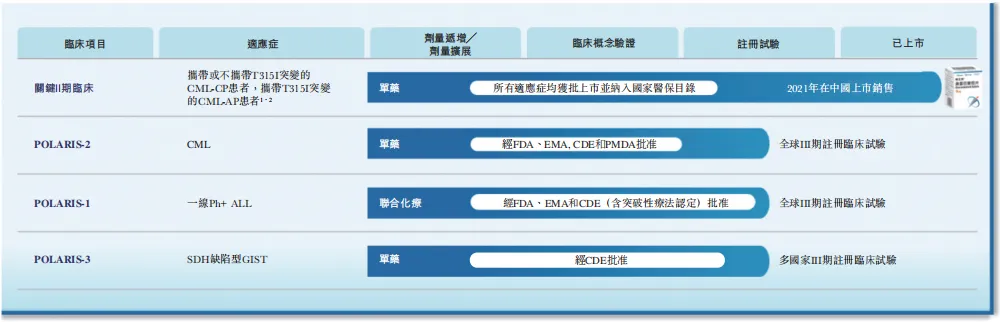 同时,针对经治CML-CP患者和针对经治SDH缺陷型胃肠间质瘤(GIST)患者的全球Ⅲ期研究(POLARIS-2和POLARIS-3)持续推进。