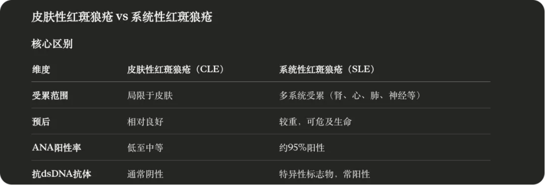 皮肤型红斑狼疮(CLE)是一种以皮肤损害为主要表现的自身免疫疾病,全球患病率约为73/10万,美国患者约20万人。面部盘状红斑、光敏感、色素沉着。当然,比起SLE,它症状稍轻,只上海皮肤,而不会累及其它器官,且不会危及生命。但即便如此,CLE也应当得到重视——就像特异性皮炎或者银屑病应该得到重视一样——它仍然有发展成SLE的风险。