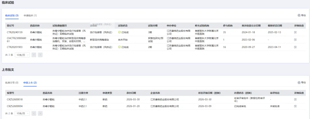 药智数据显示,康缘药业在2023年和2024年先后完成了热毒宁颗粒的Ⅱ期、Ⅲ期临床试验。今年1月份,该品种曾首次提交上市申请,但遗憾未能获批。 时隔数月,此次是该品种的“二次报批”,足见康缘在临床数据打磨与补充上的决心与执行力。