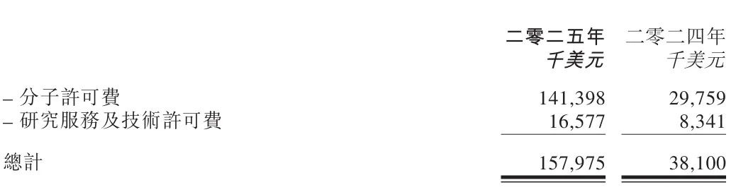 和铂医药2025年财务数据展现出强劲的增长动能。收入构成方面,分子许可费从2024年的2976万美元激增至1.41亿美元,同比增长374.7%,主要得益于公司与多家跨国制药企业达成的战略合作及创新产品的对外授权。研究服务及技术许可费也实现98.7%的增长,达到1658万美元。