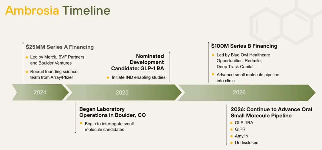 Clarke博士表示:“随着第一代口服GLP-1疗法现在获得批准,我们相信Ambrosia完全有能力开发具有一流潜力的差异化小分子疗法。我们很高兴能够领导这样一个强大的投资者联盟,并支持Ambrosia团队将其领先的GLP-1项目和更广泛的小分子管线推向临床。”