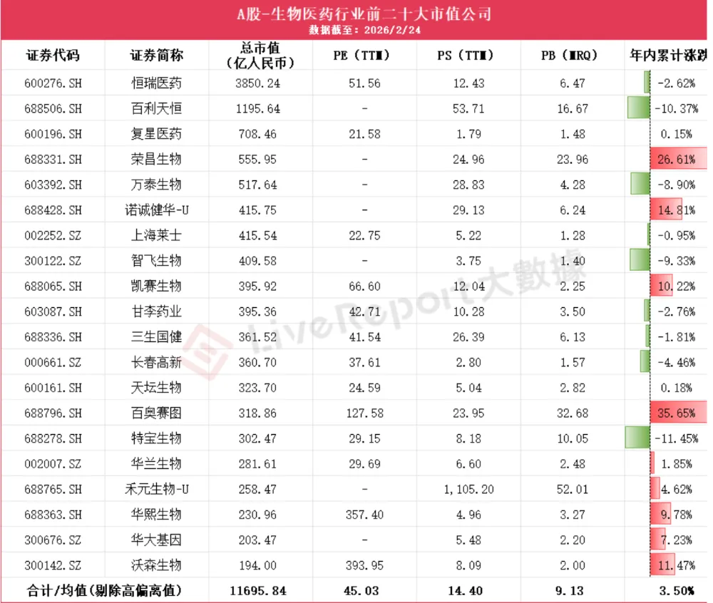 据统计,2026年2月,港股年内前二十大生物医药公司平均PE(剔除极端值后)高达57.62倍,A股则为45.03倍,美股前二十大公司平均PE为32.66倍。这种估值差异,反映了市场对中国创新药企未来高成长性的预期,尤其是在ADC、双抗等前沿赛道,具备核心技术壁垒的企业更能获得全球资本的追捧。