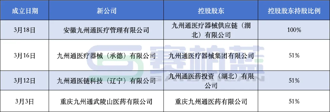 四大药商通过子公司成立更多相关连公司的动作不断。以九州通为例,赛柏蓝不完全统计,仅在三月份,其成立的新公司至少已有4家。