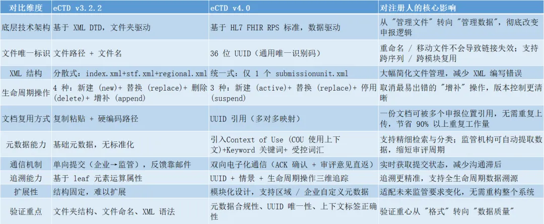 eCTD v4.0 与 v3.2.2 核心差异对照表