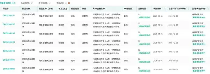 在减重领域,石药集团的布局已进入收获期,形成了“单靶点+双靶点”的多元化布局。其中,司美格鲁肽的两项上市申请已于2025年先后获得受理,适应症分别为成人2型糖尿病患者的血糖控制、在控制饮食和增加体力活动的基础上对成人超重/肥胖患者的长期体重管理,司美格鲁肽作为当前减重领域的重磅药物,市场需求旺盛,石药集团的这款仿制药若顺利上市,有望快速抢占市场份额。此外,石药集团还布局了GLP-1/GIP受体双偏向性激动多肽注射液(SYH2069注射液)与GLP-1/GIP受体双偏向性激动多肽长效注射液(SYH2082注射液),这两款药物均已在中国、美国获批临床,其中SYH2082在临床前研究中表现出更优的长效减重及维持效果,且支持每月一次的用药方案,相较于司美格鲁肽的每周一次给药,具有更高的患者依从性,有望成为减重领域的潜力品种。