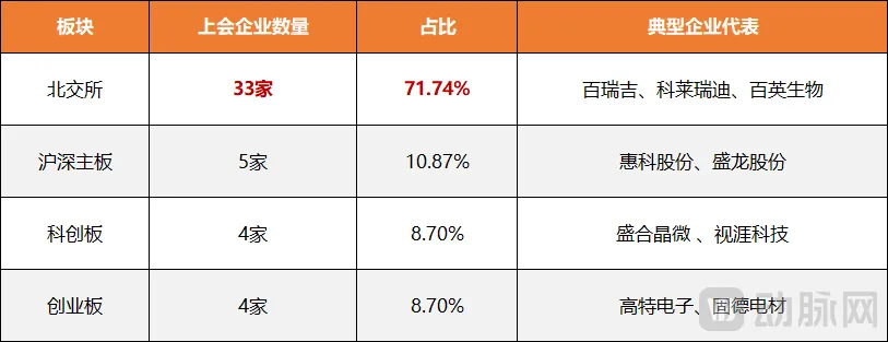 如果再放大到整个行业来看,北交所更是表现抢眼。2025年,北交所共受理176家企业上市申请,较2024年的66家飙升167%,并大幅超过沪深其他板块合计的124家。进入2026年一季度,沪深北三大交易所共迎来46家企业首发上会,其中北交所以33家上会企业数量独占鳌头,占比高达71.74%,成为一季度IPO审核的绝对主力。截至2026年3月20日,北交所存量上市公司数量已正式突破300家大关,毫无疑问已成为国内IPO市场最具活力的增长极。