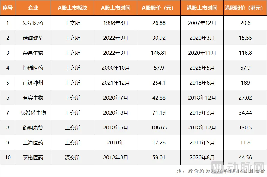 图8.“A+H”医疗企业代表性案例