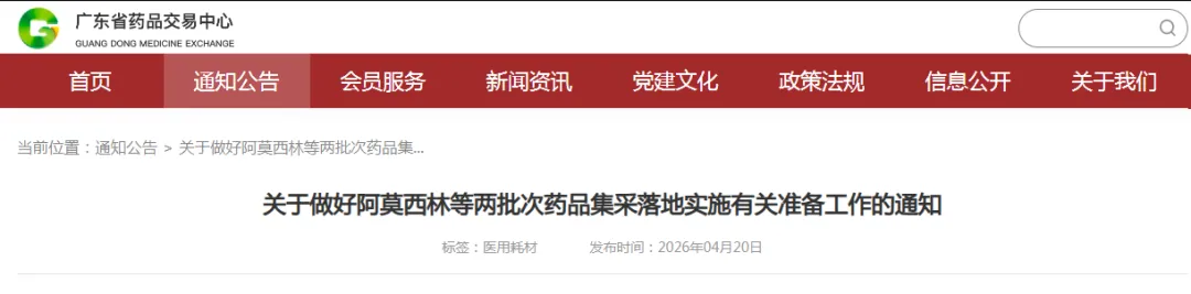 就在此前一日,广东省药品交易中心发布通知,明确启动阿莫西林等两批次药品集采落地执行工作,首年采购周期自2026年4月30日起至2027年3月30日止。