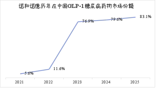 图2.诺和诺德2021-2025年在中国GLP-1糖尿病药物市场份额