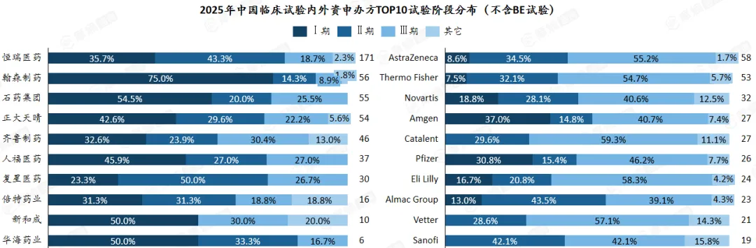 摩熵咨询的报告进一步揭示了一个关键的结构性差异:内外资企业在临床试验阶段的布局上形成了鲜明的战略分野。