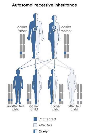 乳清酸尿症,常染色体隐性遗传模式(图片来自Wikipedia)