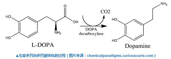 目前治疗帕金森氏症的标准疗法是口服左旋多巴/卡比多巴的复方制剂药片。左旋多巴是多巴胺的前体,它可以通过血脑屏障进入大脑,然后被转化为多巴胺。卡比多巴虽然不能通过血脑屏障,但是可以防止左旋多巴在未进入大脑之前就被转化成多巴胺。这种疗法虽然可以将帕金森氏症患者从“关闭”状态中解脱出来,但是如果药物用量过大会导致患者产生异动症(Dyskinesia),即躯干和肢体不自主的异常运动。
