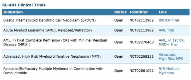 ▲候选产品SL-401正在进行多项临床研究(图片来源:Stemline官方网站)