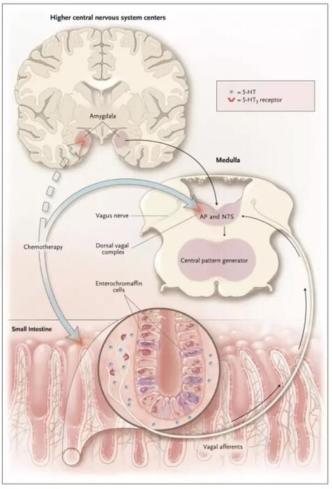 5-HT3 受体拮抗剂的作用机理(图片来源:virtualmedicalcenter.com)