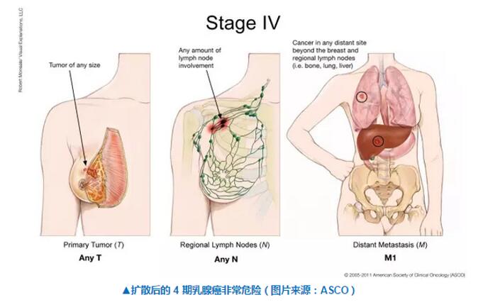 转移性乳腺癌是乳腺癌该种疾病的最严重形式,此时癌症已经扩散到身体的其他部位,如脑、骨骼甚至肝脏。三分之一早期乳腺癌患者会有可能随后恶化成为转移性病情。