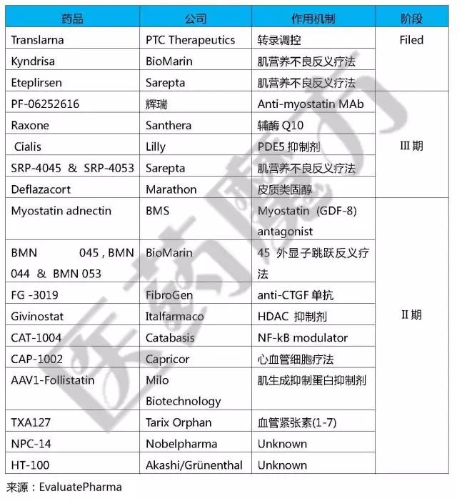 DMD药物管线