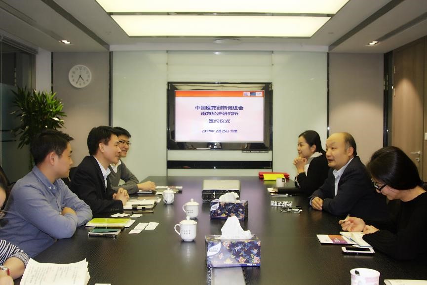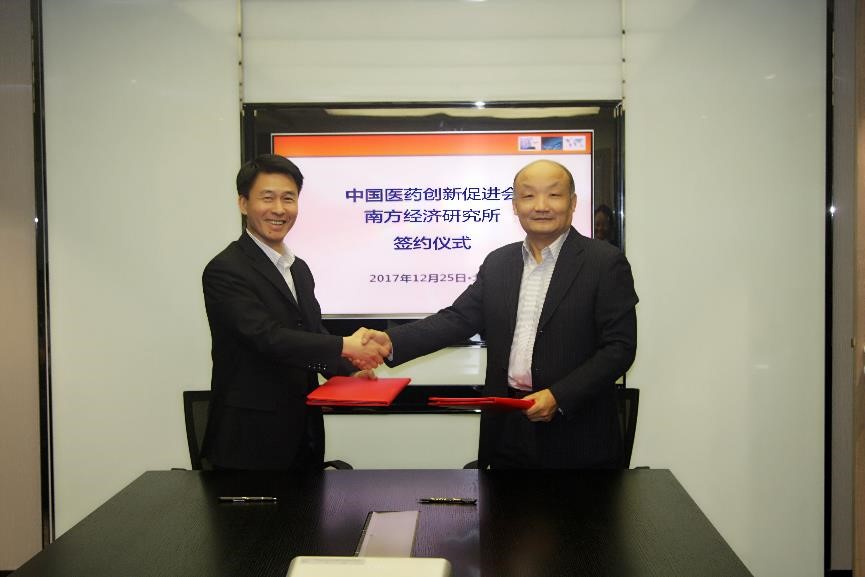 2017年12月25日下午,中国医药创新促进会(以下称“中国药促会”)与国家食品药品监督管理总局(CFDA)南方医药经济研究所(以下称“南方所”)战略合作协议签订仪式在北京举行,中国药促会宋瑞霖执行会长与南方所林建宁所长分别代表两方机构在战略合作协议上签字。