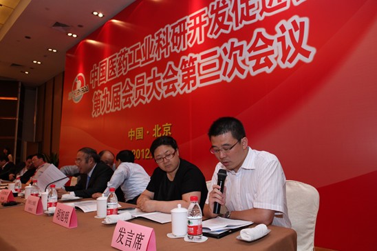 2012年6月1日上午,中国药促会第九届会员大会第三次会议在北京召开。全国人大常委会副委员长、中国工程院士桑国卫先生,卫生部长陈竺,中国工业经济联合会经团部胡旭明副主任等出席会议。来自国药集团、石药集团、复星医药集团、天士力集团、上药集团、太极集团、中国科学院上海药物研究所等副会长单位和中国药科大学、沈阳药科大学、北京大学药学院、中国医学科学院药物所、生物技术所、军事医学科学院毒物研究所、天津药物研究院、江苏恒瑞、先声集团、华北制药、浙江康恩贝、浙江医药、山西振东、东总、绿叶制药、科伦药业、山东步长、梧州中恒、杭州民生等45家会员单位的90多位代表出席了会议。会议审议通过了一系列重要决议。