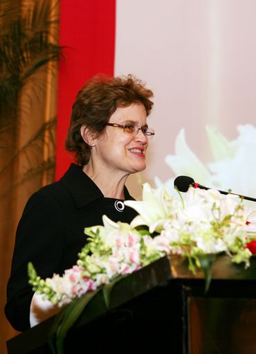 澳大利亚驻华大使孙芳安在发布会上讲话