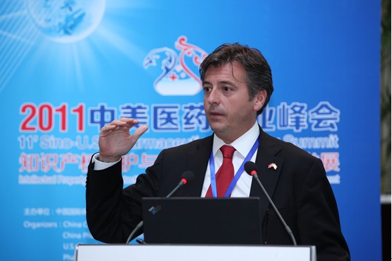 赛诺菲全球专利负责人罗伯特·德·伯纳丁发表演讲
