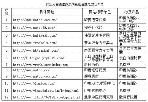 据国家食品药品监督管理局网站消息,日前,国家食品药品监督管理局发布公告,曝光12家违法发布虚假药品信息销售药品网站。目前,相关违法网站已被依法移送有关部门进行查处。国家食品药品监管局提醒公众通过正规渠道购买药品。