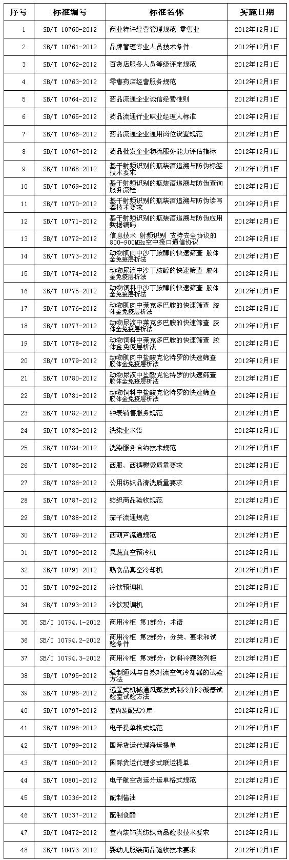 附件:48项国内贸易行业标准编号、名称及实施日期