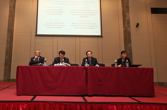在嘉宾讨论环节中,中国药促会副总监王鑫、中国化学制药工业协会副会长张明禹、中国医药保健品进出口商会副会长许铭、中国外商投资企业协会药品研制和开发行业委员会顾问陈洁一同介绍了中国在推行医药产业伦理准则方面所取得的成果,并就今后工作进行了深入讨论。