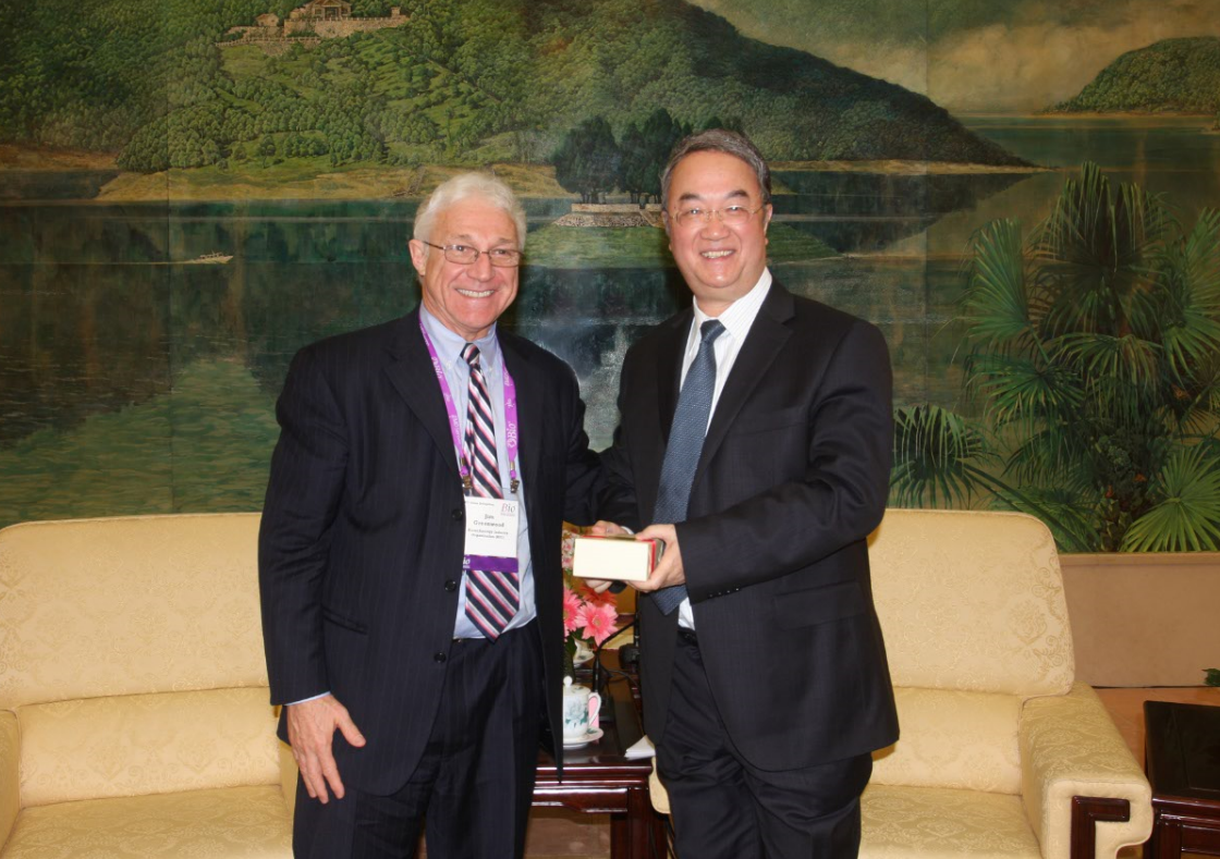James Greenwood, President and CEO of BIO gave a gift to Sang Guowei.