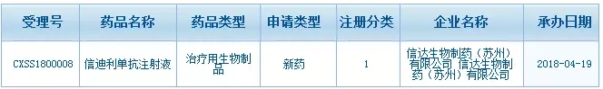 4月19日,信达生物重新提交的PD-1单抗信迪利单抗注射液的上市申请(CXSS1800008)正式获得药品审评中心承办受理。