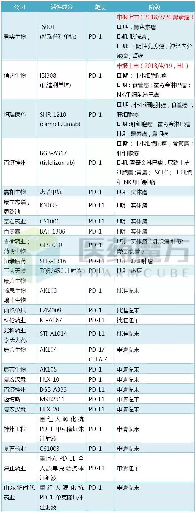 目前已有包括百济神州、信达生物、恒瑞医药、君实生物、丽珠单抗、康宁杰瑞/思路迪、复宏汉霖、迈博斯等多家企业的PD-1/PD-L1药物同步开展了美国IND申报并获得许可,这也说明中国药企已做好了接受中国和国际标准双重检验的准备。