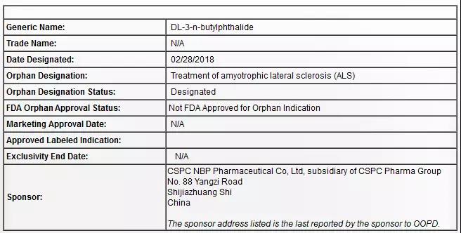石药集团3月11日发布公告,称其开发的消旋-3-正丁基苯酞(丁苯酞)获得美国FDA颁发的治疗肌萎缩侧索硬化症(Amyotrophic Lateral Sclerosis,ALS)的孤儿药资格认定。
