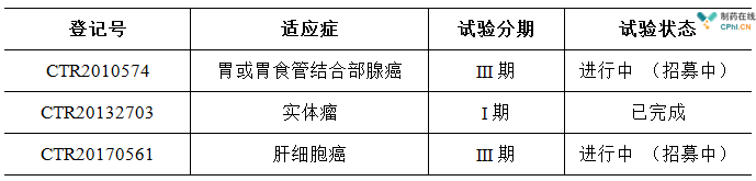 目前,雷莫芦单抗还没有在我国大陆上市。在CDE药物临床试验登记与信息公示平台中,雷莫芦单抗公开的试验信息有3项,一项已经完成,其余两项处于受试者招募中,试验涉及的适应症包括了胃或胃食管结合部腺癌、肝细胞癌以及实体瘤。