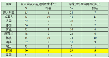 (数据来源:International comparison of waittimes and quality of care:A pilot study by Niemeyer,Chad,M.P.H.,THE UNIVERSITY OF TEXAS SCHOOL OF PUBLIC HEALTH,2011,50pages;1501003)