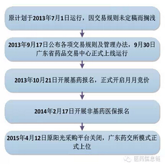 广东药交所模式自上线以来就在业界的争议中艰难的推行。掐指一算,从广东药交所正式上线运行到现在,已经历了超过一年半的时间。药交所平台交易已完成基药、非基药医保的多轮竞价,并进入平稳运行阶段。以下是广东药交所的发展进程。