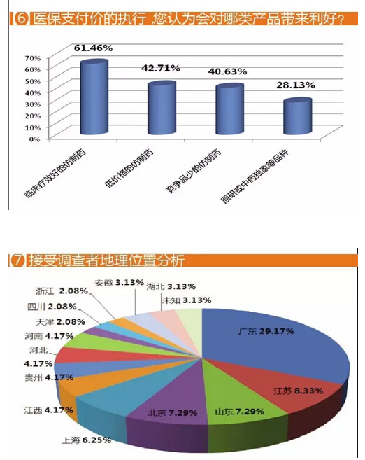 在市场影响预判的问卷中,企业人士认为临床疗效好的仿制药会受益,选择此选项的比例高达61.46%,低价仿制药和竞品少的仿制药各获得40%左右的选票。