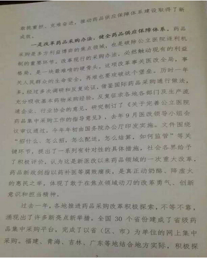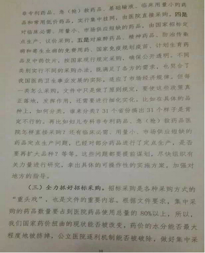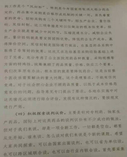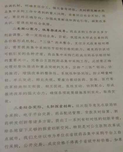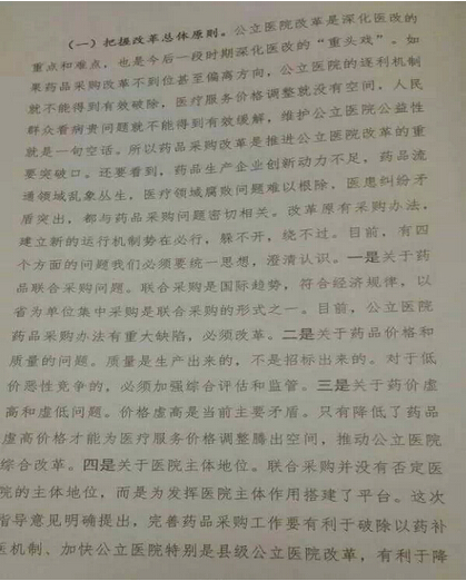 孙志刚讲话中明确“如果药品采购改革不到位甚至偏离方向,公立医院的逐利机制就不能得到有效排除,医疗服价格调整就没有空间,人民群众看病贵的问题就不能得到有效的环节,维护公立医院公益性就是一句空话,所以药品采购改革是是推进公立医院改革的重要突破。”