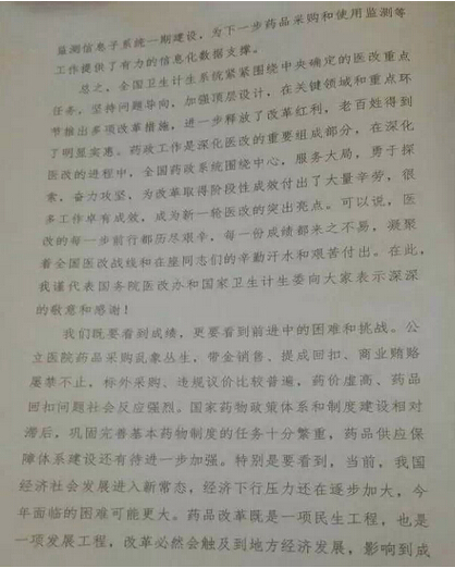 近日,有热心的微友提供了孙志刚讲话全文,从孙志刚讲话的全文来看,降价是关键词。“我们改革原有办法,根本目的就是要降低药价,……这个是硬要求,不能有任何变通。”