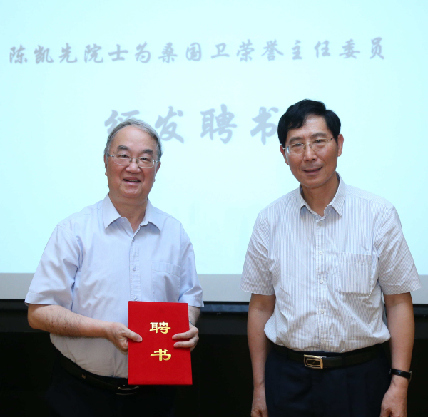 陈凯先院士为桑国卫院士颁发聘书